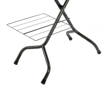 Доска оснащена большой подставкой для утюга и удобной полкой для белья.